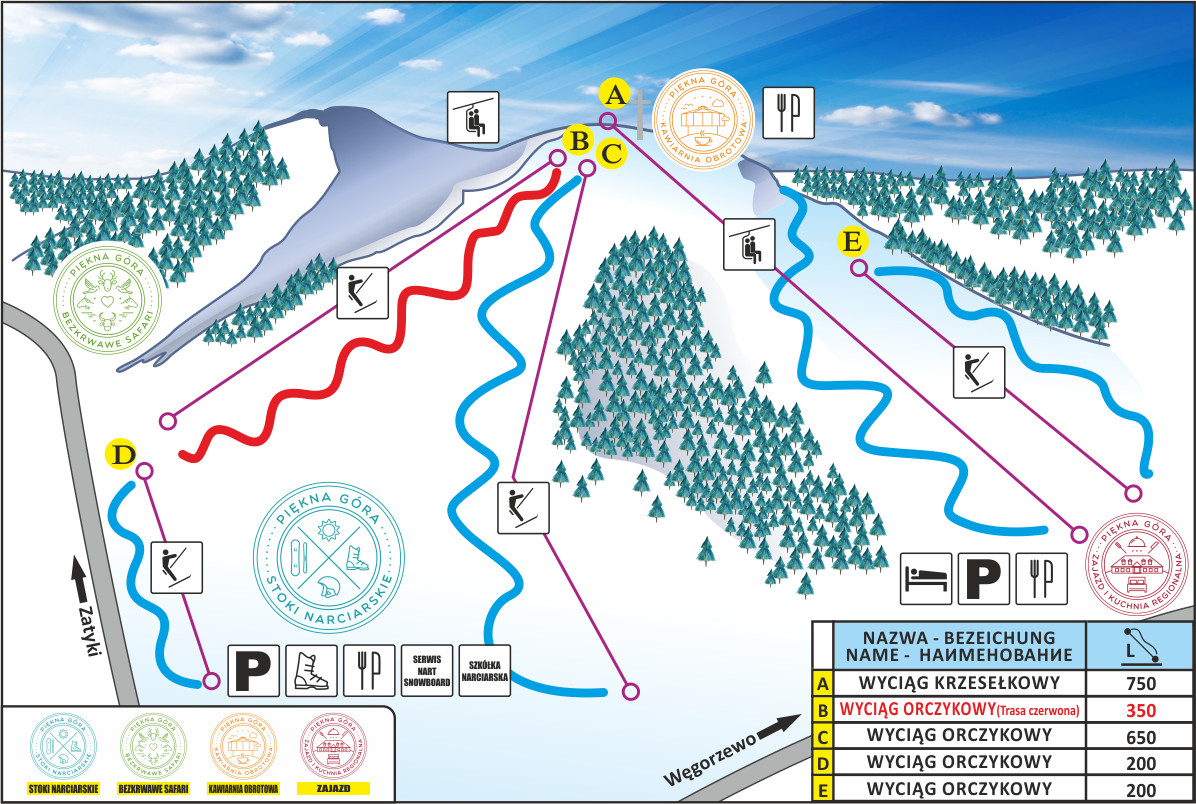 * godziny otwarcia uzależnione od warunków atmosferycznych i obłożenia wyciągów